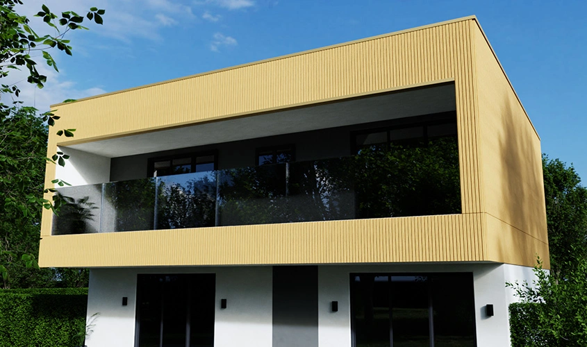 Le bardage WEO 60 offre le rendu chaleureux du bois avec la robustesse d’un composite co-extrudé conçu pour durer.