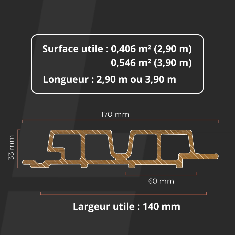 • Surface utile lame : 2,90m = 0,406 m2 / 3,90m = 0,546 m2