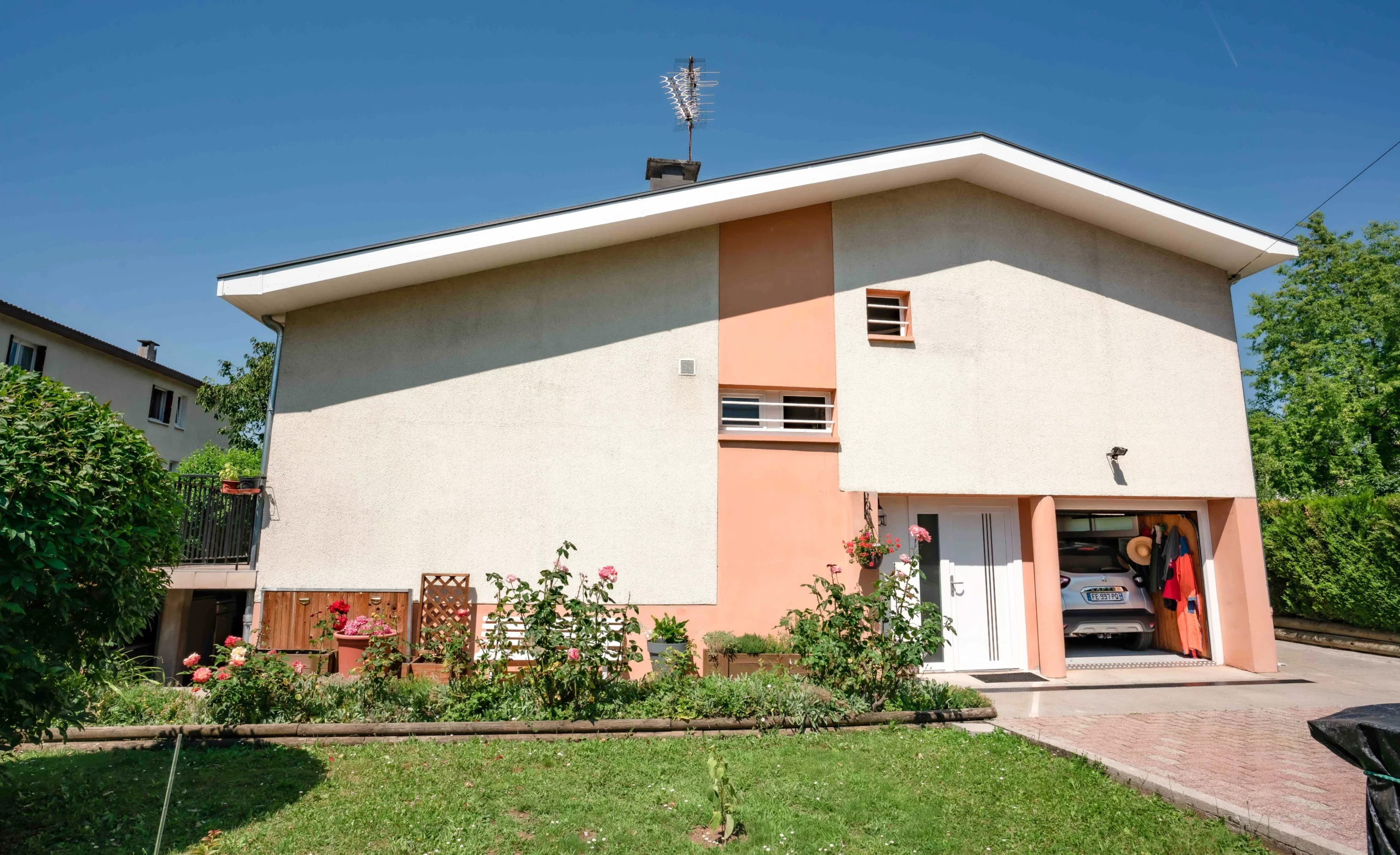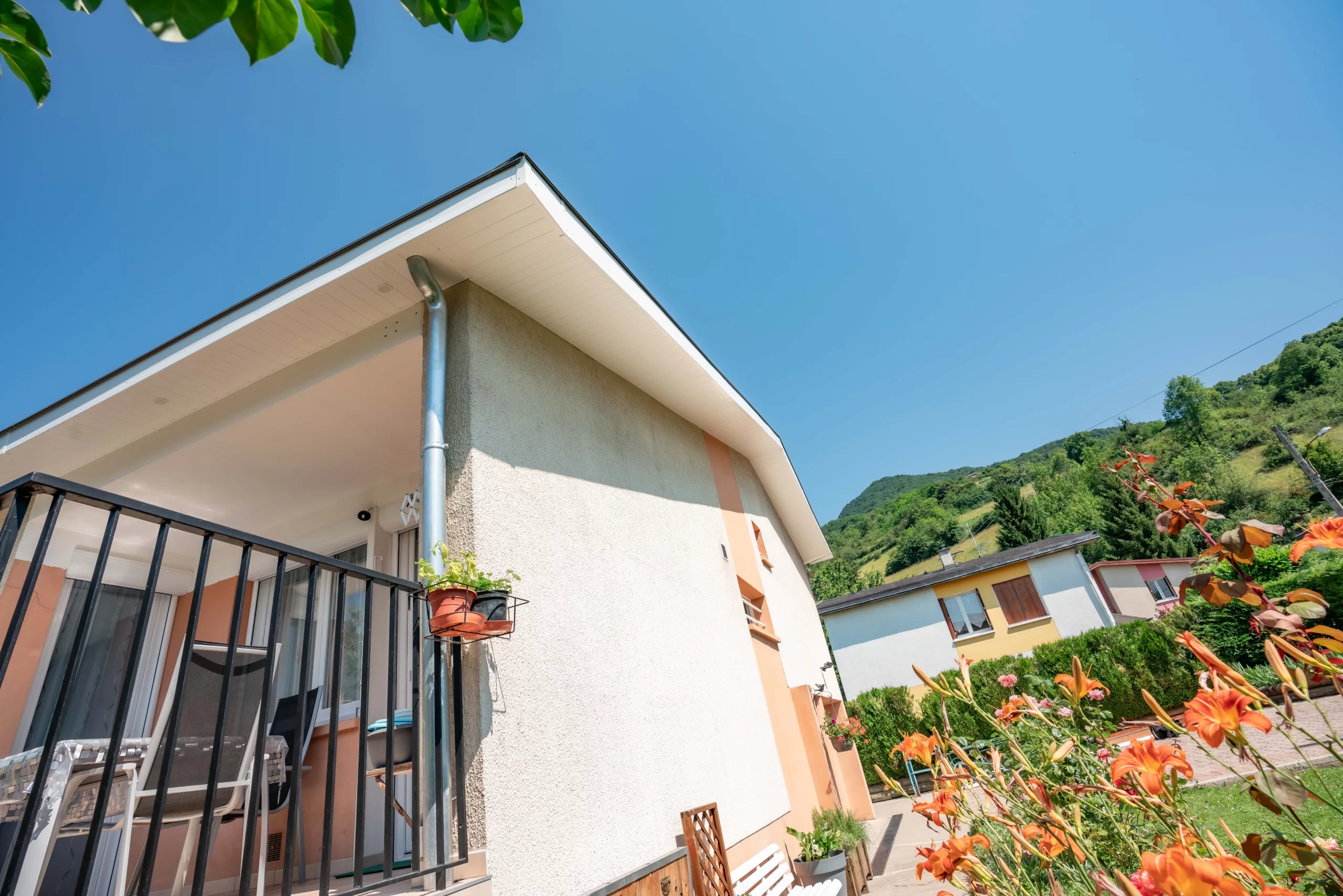 La solution la plus logique et durable était d’opter pour un habillage de toiture en PVC blanc, un matériau qui offre le même rendu visuel tout en éliminant les contraintes d’entretien.