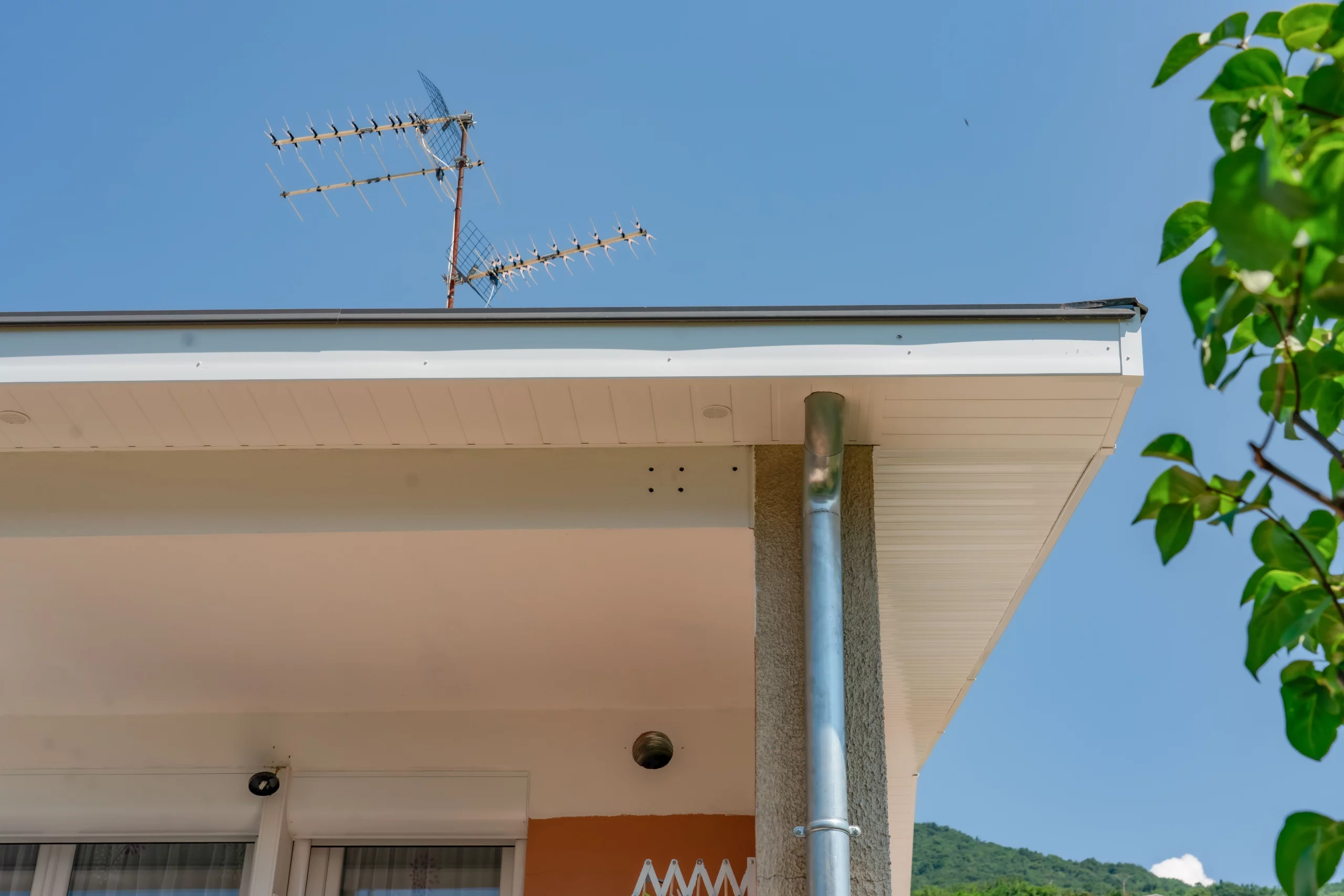 Le client souhaitait remplacer ses anciennes planches de rive et son lambris en bois par une solution durable, esthétique et sans entretien.